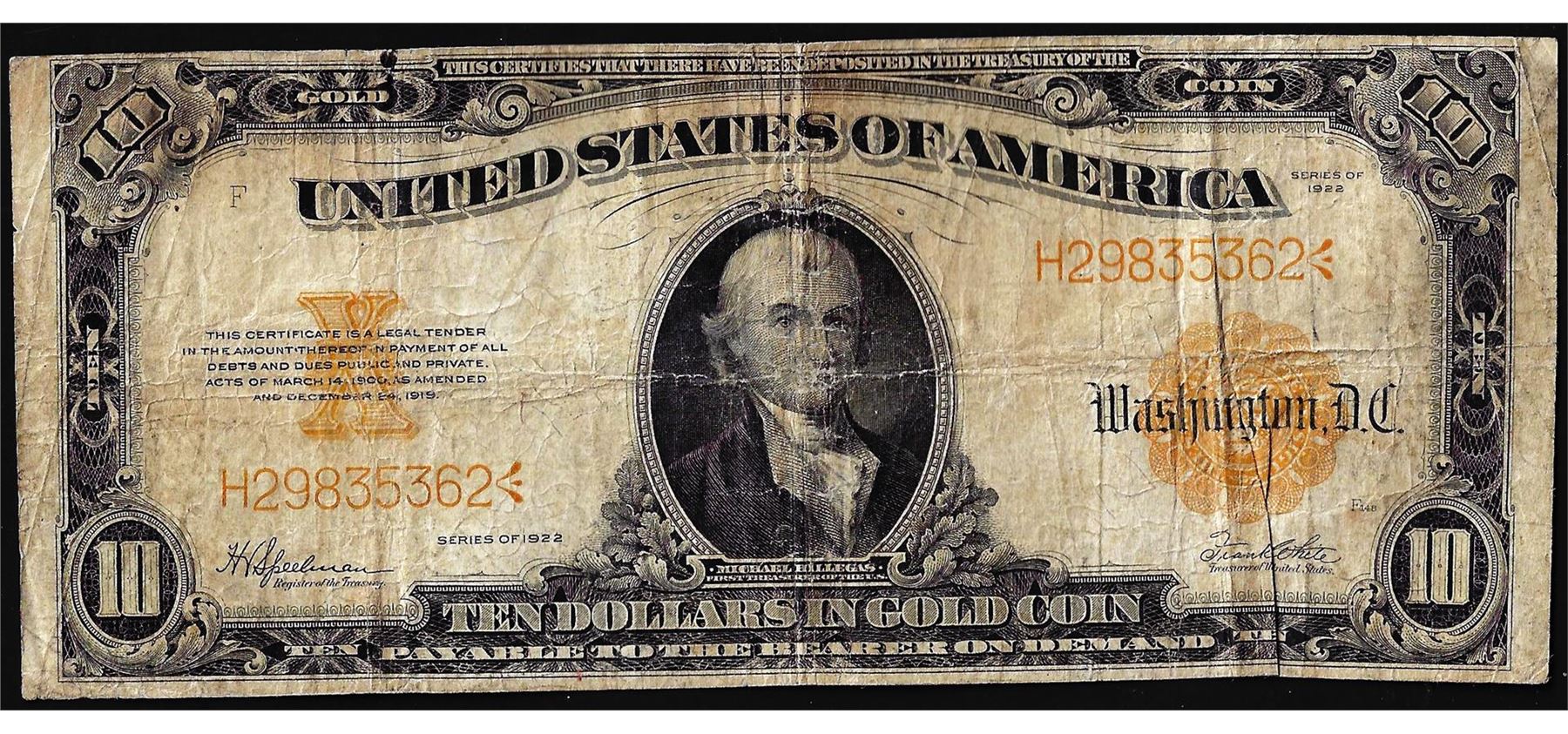 One 1922 $10 Gold Certificate Note.