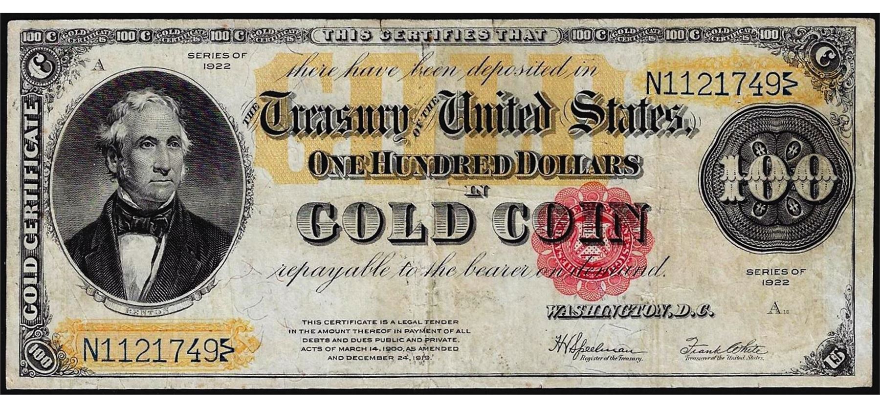One 1922 $100 Gold Certificate Note.