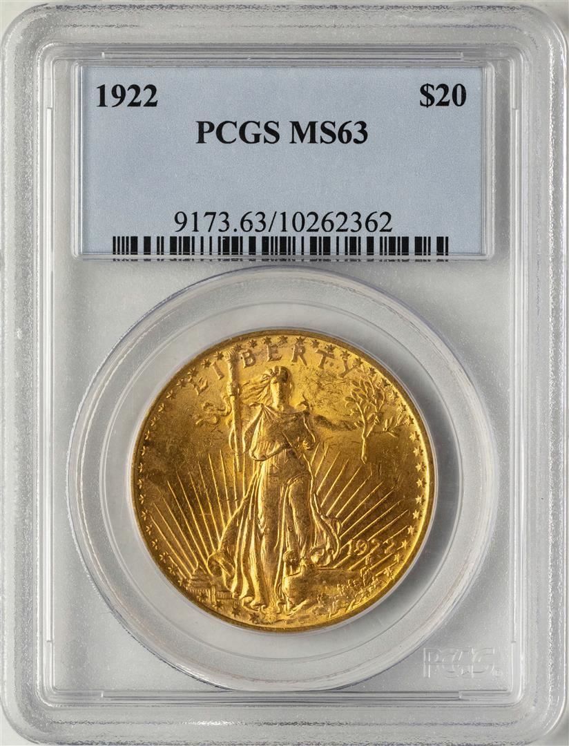 One 1922 $20 Liberty Head Double Eagle Gold Coin PCGS MS61. PCGS Graded.