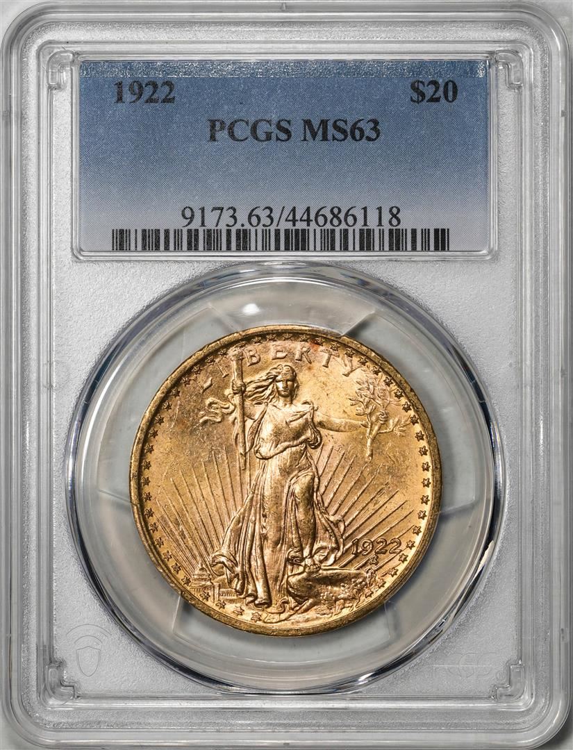 One 1922 $20 Liberty Head Double Eagle Gold Coin PCGS MS63. PCGS Graded.
