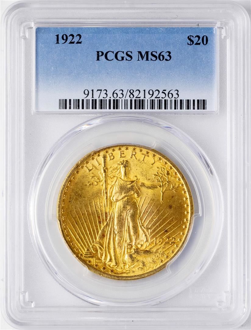 One 1922 $20 St. Gaudens Double Eagle Gold Coin PCGS MS63. PCGS Graded.