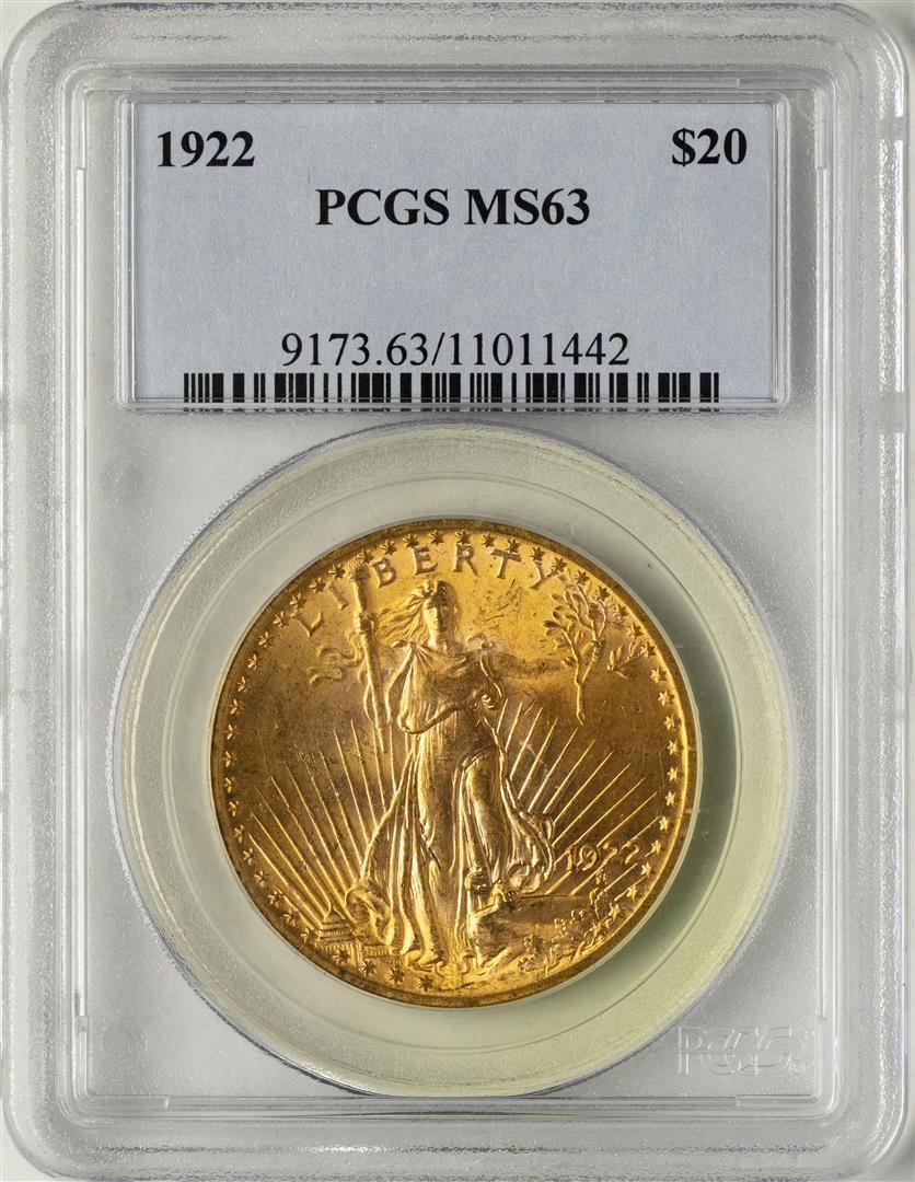 One 1922 $20 St. Gaudens Double Eagle Gold Coin PCGS MS63. PCGS Graded.