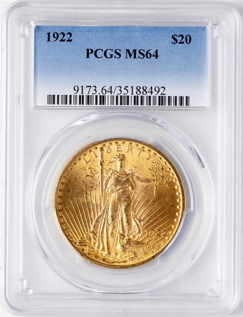 One 1922 $20 St. Gaudens Double Eagle Gold Coin PCGS MS64. PCGS Graded.