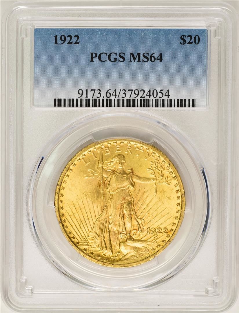 One 1922 $20 St. Gaudens Double Eagle Gold Coin PCGS MS64. PCGS Graded.