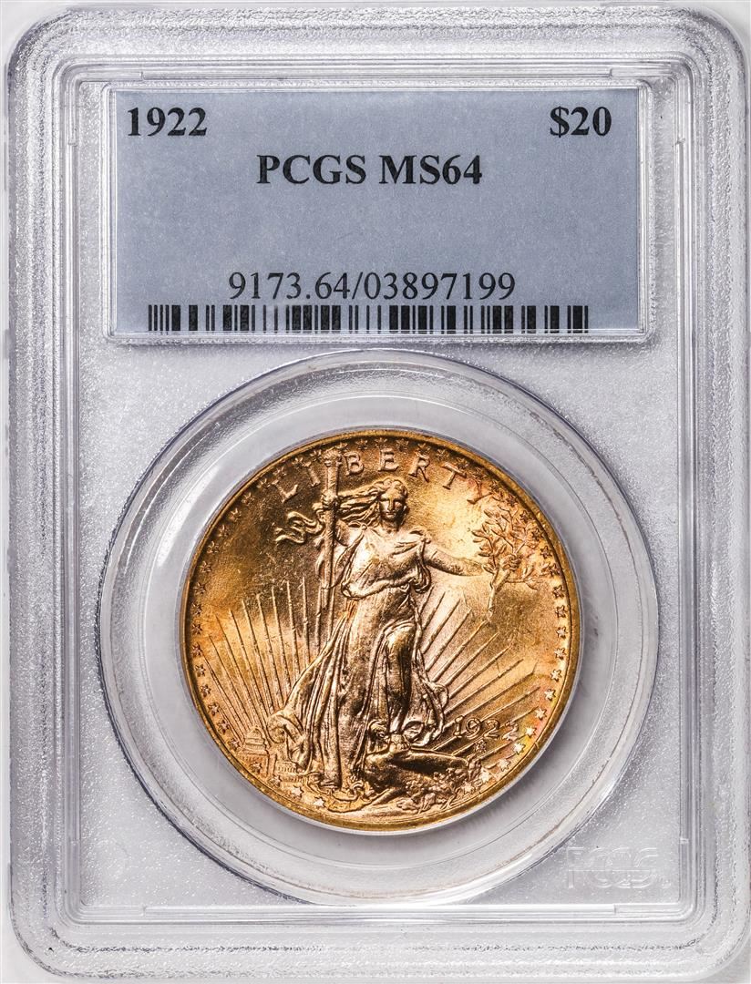 One 1922 $20 St. Gaudens Double Eagle Gold Coin PCGS MS64. PCGS Graded.