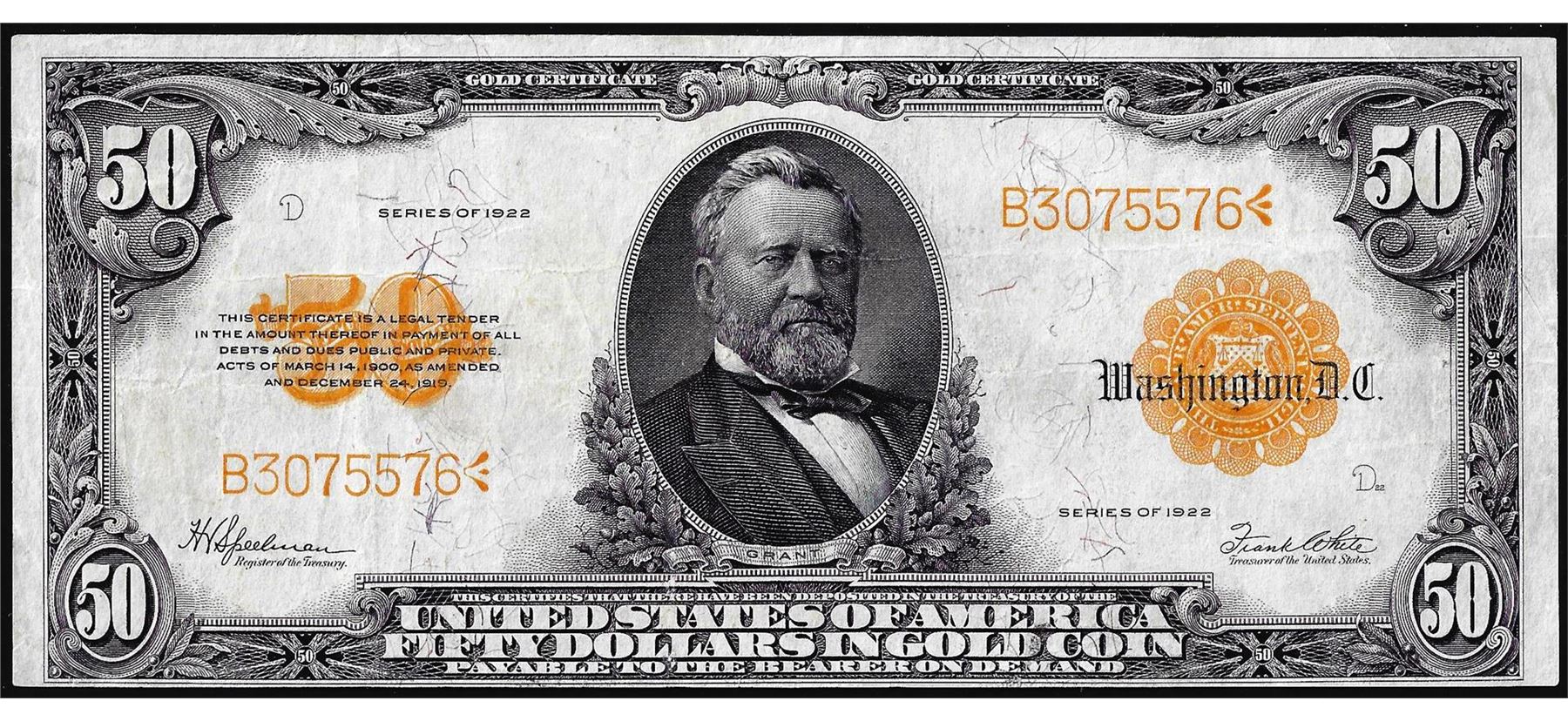 One 1922 $50 Gold Certificate Note.