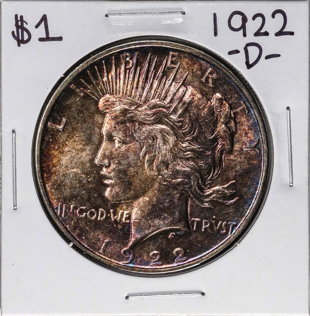 One 1922-D $1 Peace Silver Dollar Coin Nice Toning.