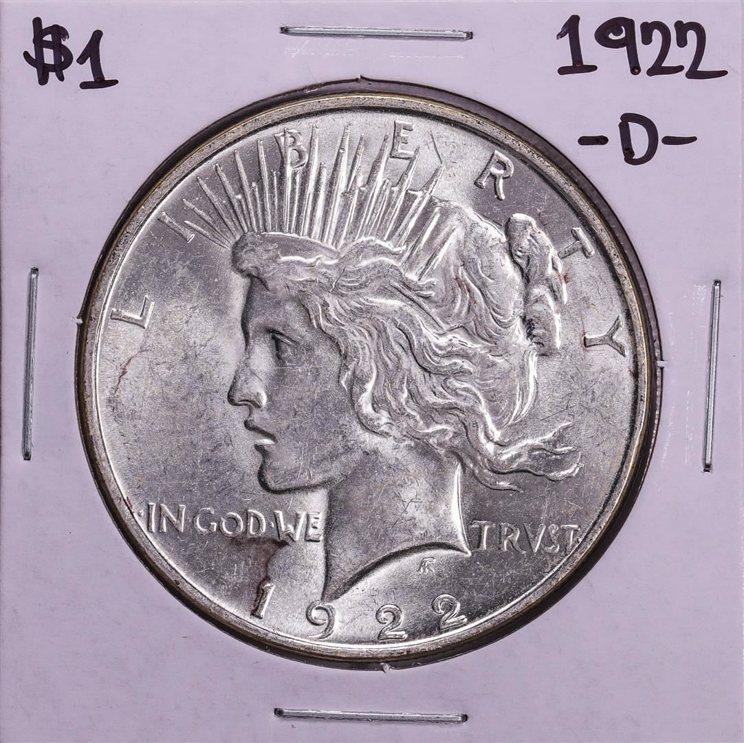 One 1922-D $1 Peace Silver Dollar Coin.