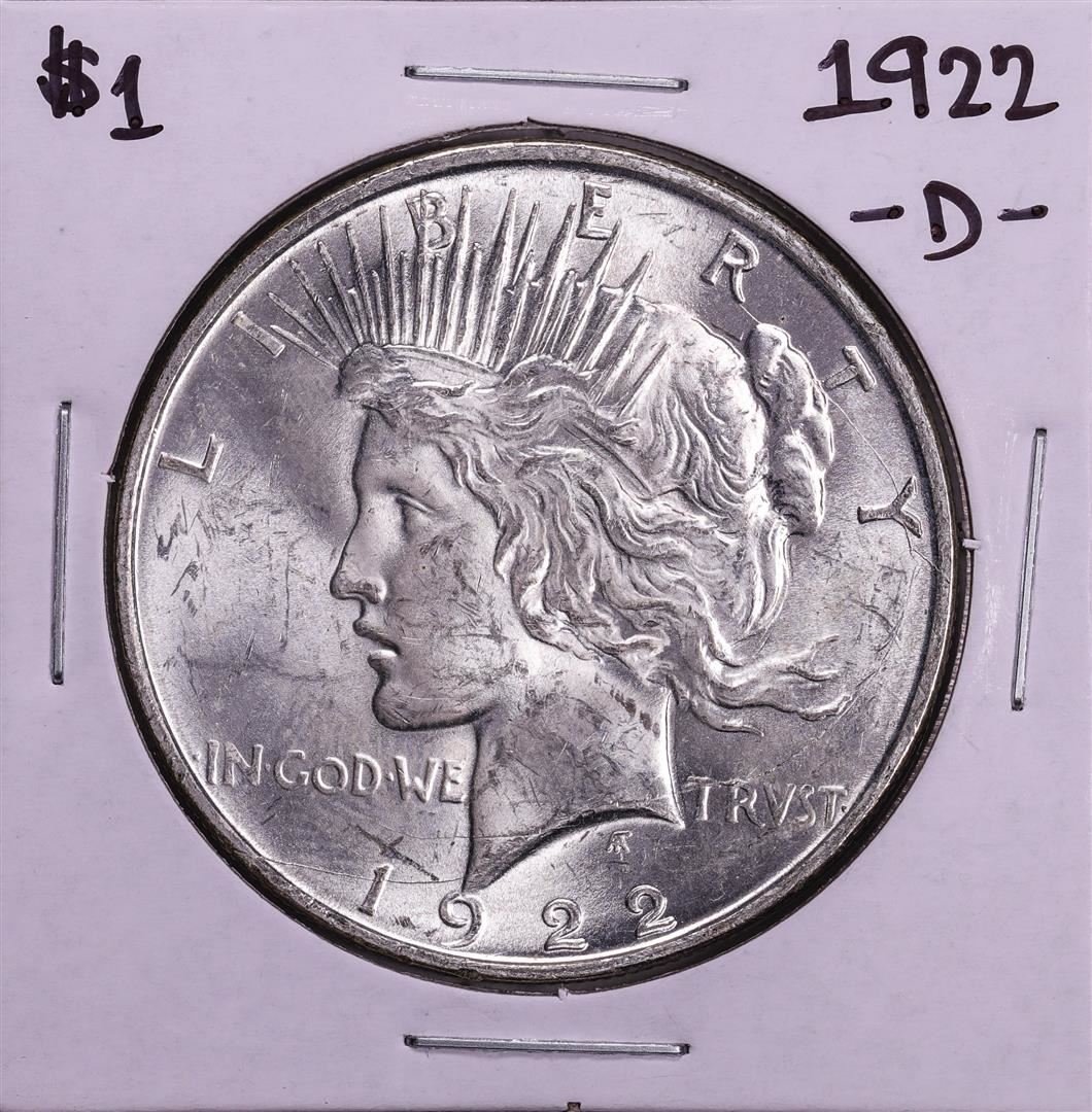One 1922-D $1 Peace Silver Dollar Coin.
