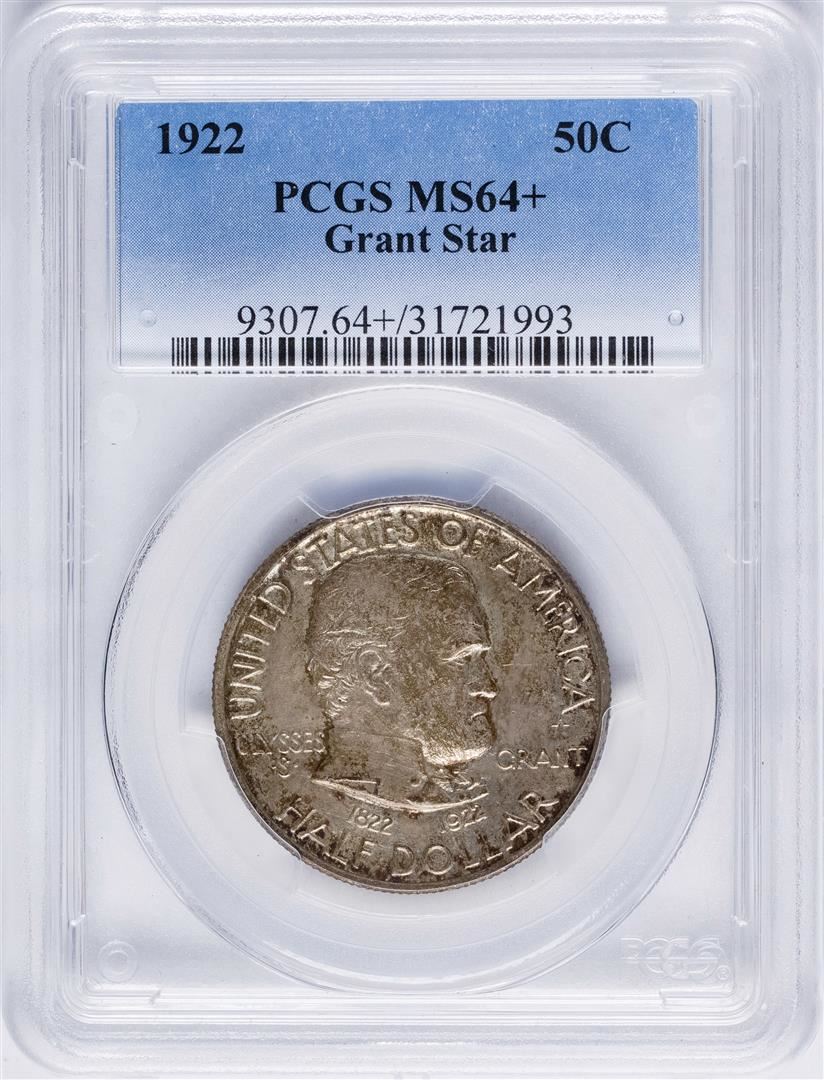 One 1922 Grant with Star Commemorative Half Dollar Coin PCGS MS64+. PCGS Graded.