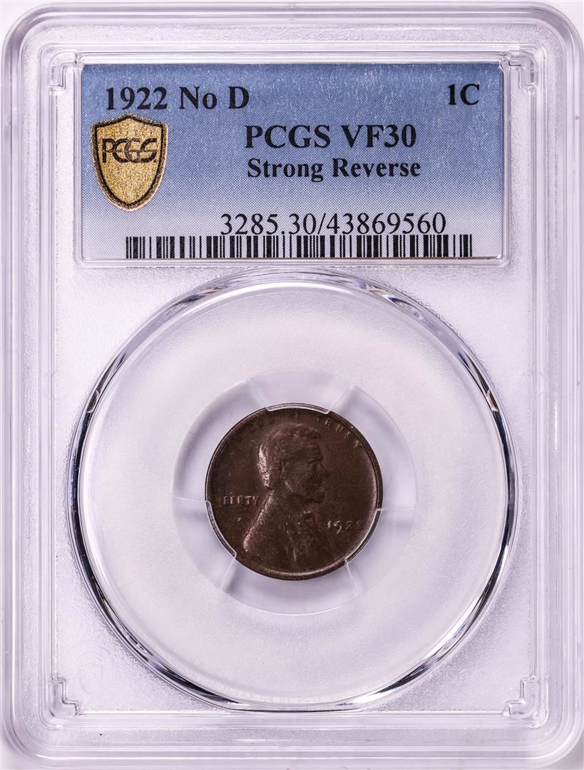 One 1922 No D Strong Reverse Lincoln Wheat Cent Coin PCGS VF30. PCGS Graded.