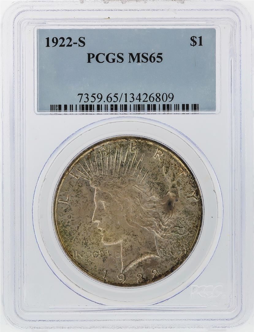 One 1922-S $1 Peace Silver Dollar Coin PCGS Graded MS65. PCGS Graded.