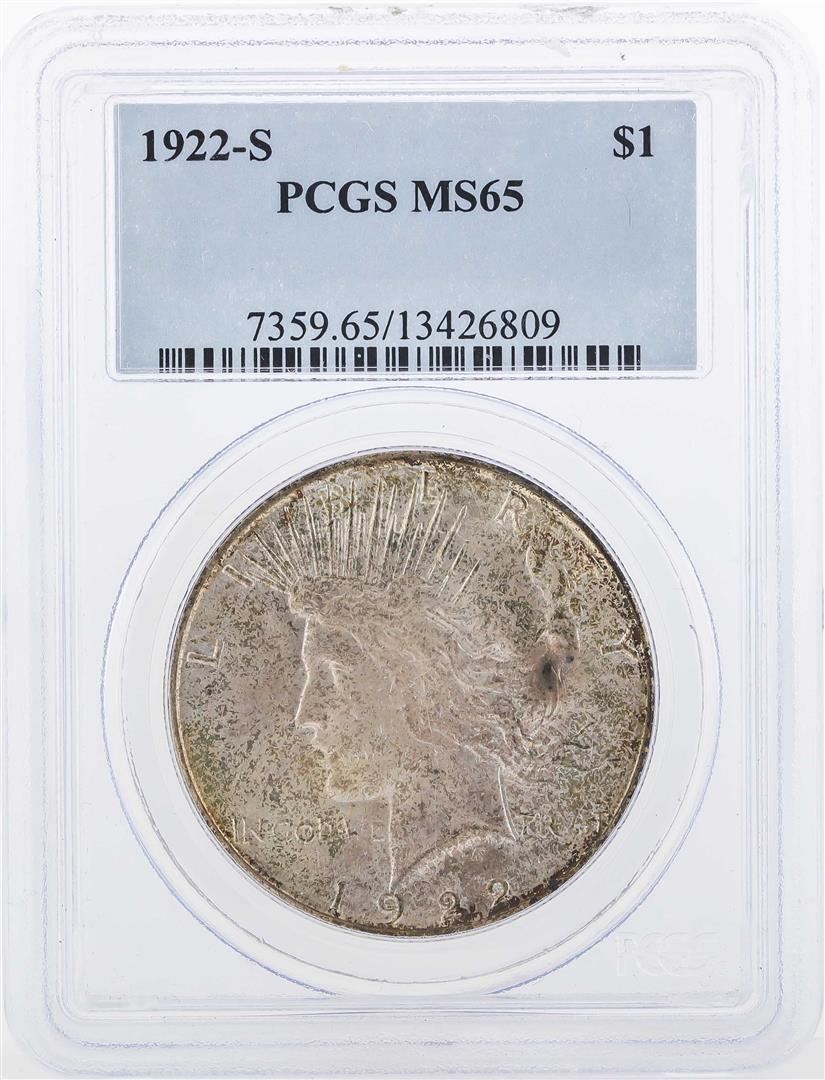 One 1922-S $1 Peace Silver Dollar Coin PCGS MS65. PCGS Graded.