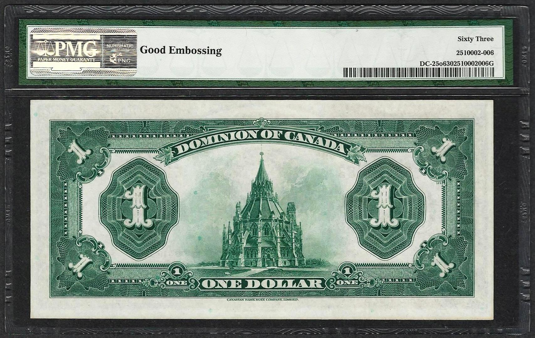 1923 $1 Dominion of Canada Bank Note DC-25o PMG Choice Uncirculated 63