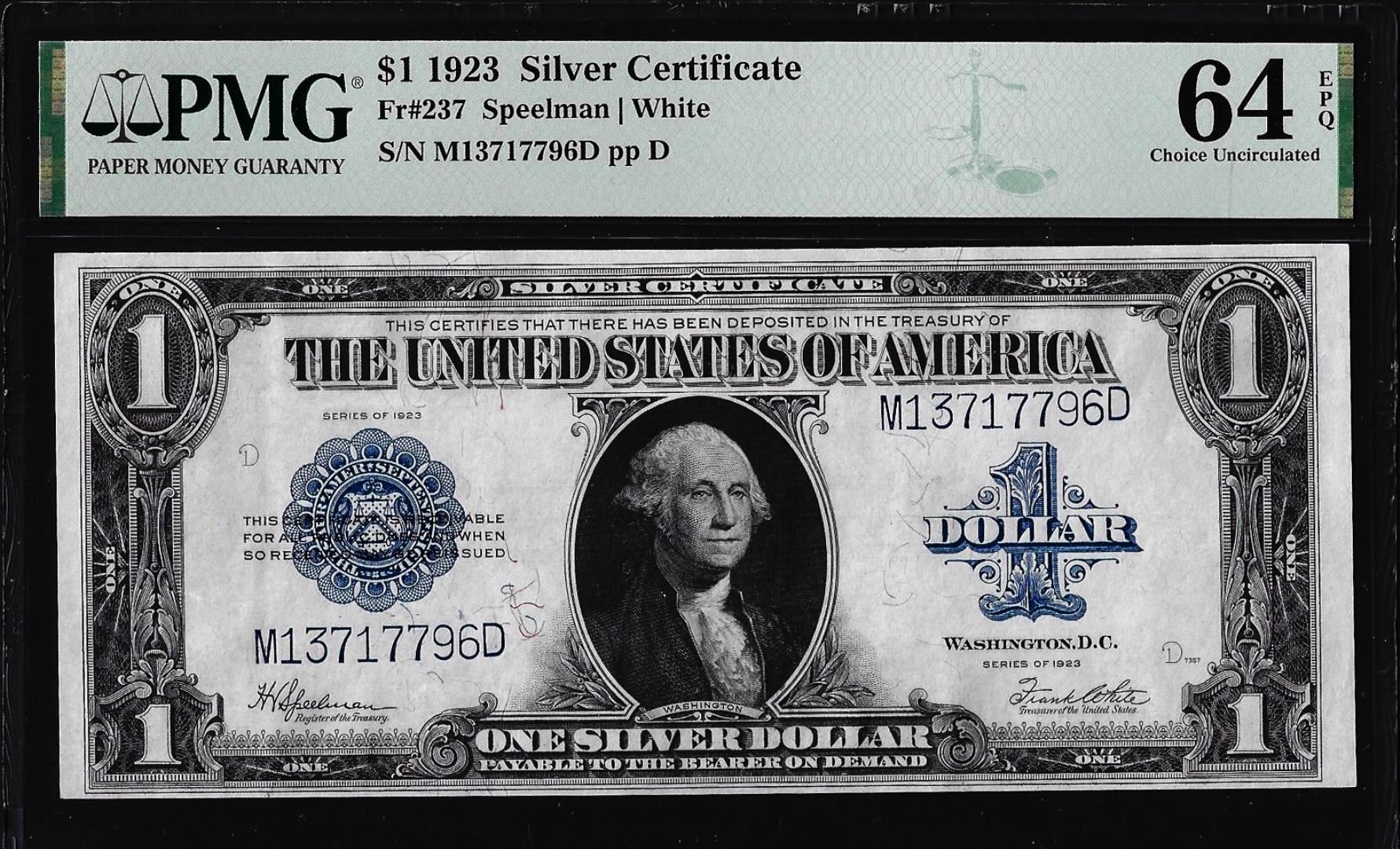 1923 $1 Horse Blanket Silver Certificate Note Fr.237 PMG Choice Uncirculated 64EPQ
