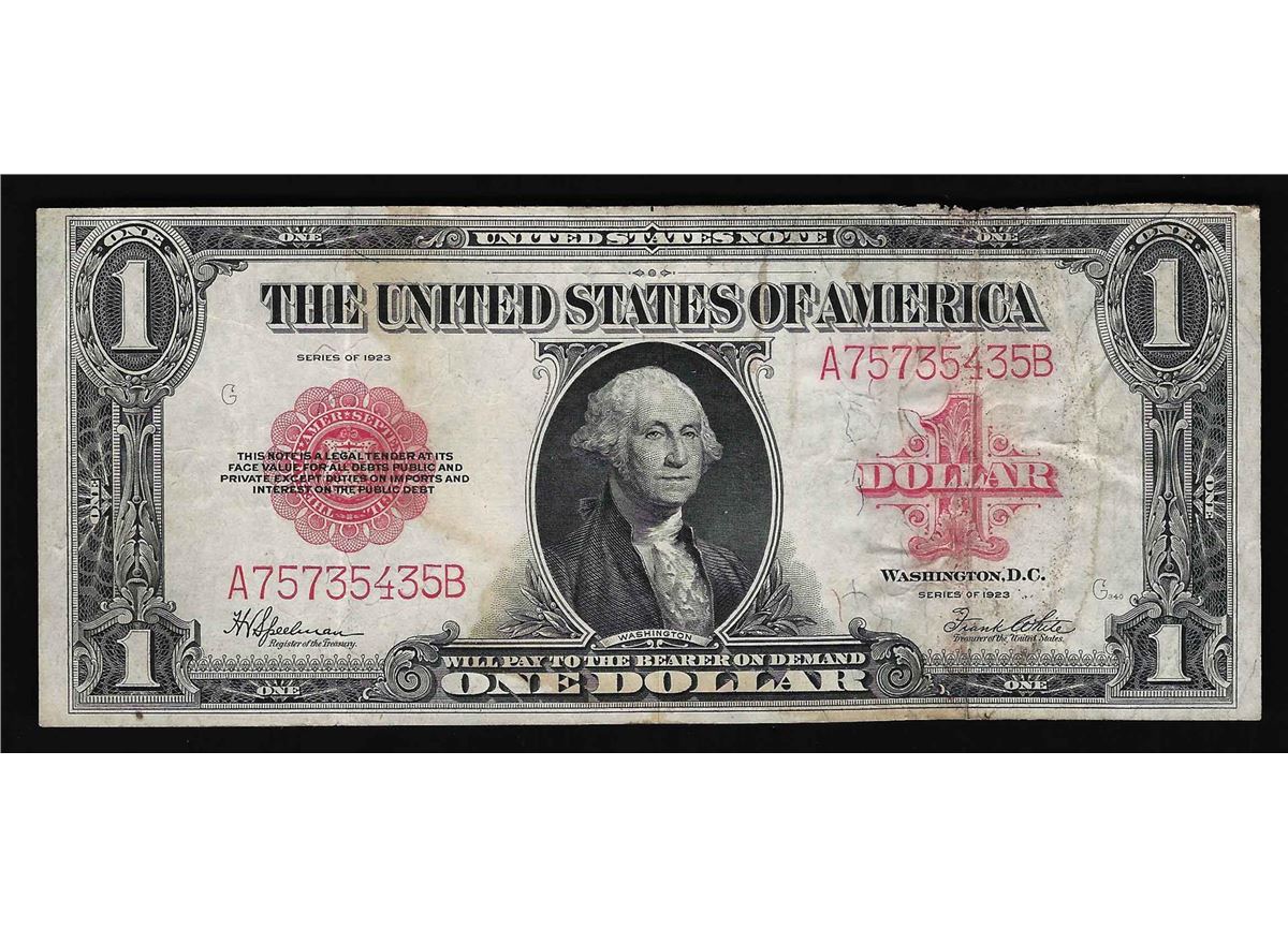 One 1923 $1 Legal Tender Note Red Seal US Currency.