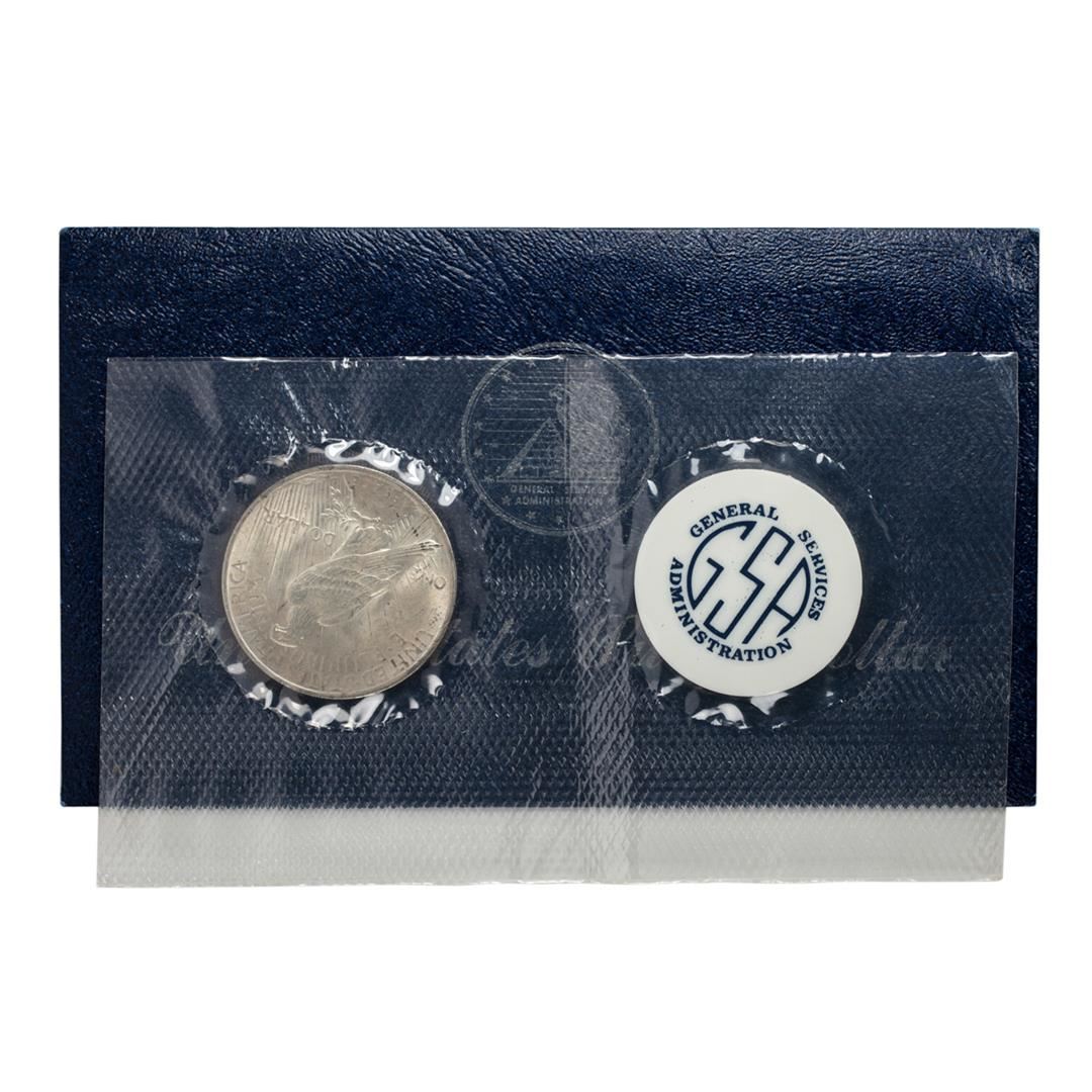 One 1923 $1 Peace Silver Dollar Coin GSA Soft Pack and Envelope.