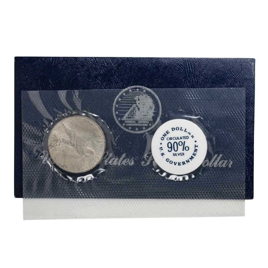 One 1923 $1 Peace Silver Dollar Coin GSA Soft Pack and Envelope.