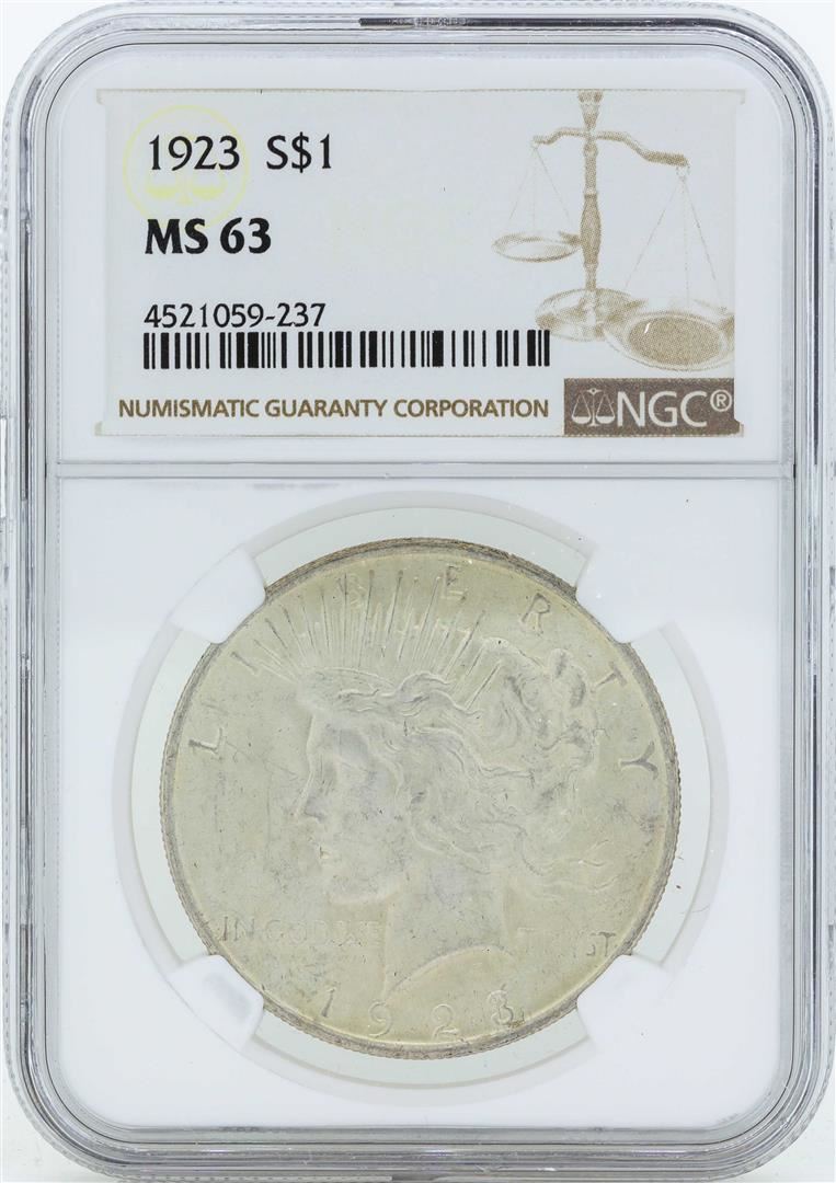 1923 $1 Peace Silver Dollar Coin NGC MS63