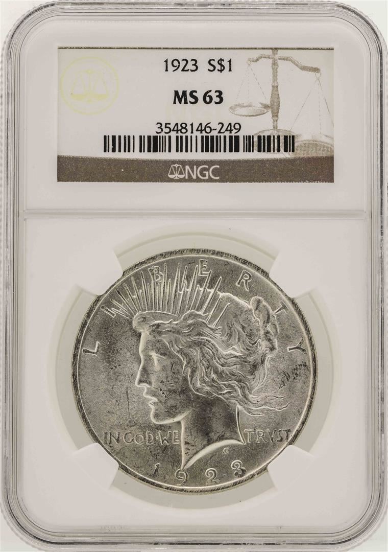 One 1923 $1 Peace Silver Dollar Coin NGC MS63. NGC Certified.
