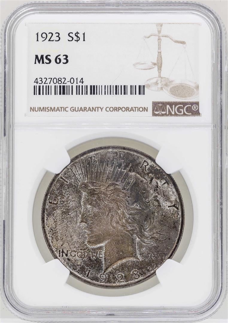 One 1923 $1 Peace Silver Dollar Coin NGC MS63. NGC Certified.