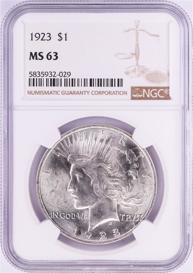 1923 $1 Peace Silver Dollar Coin NGC MS63