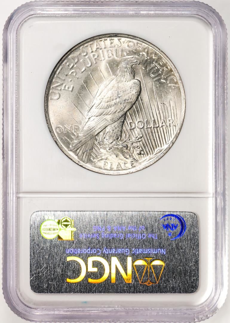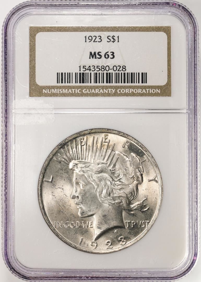 One 1923 $1 Peace Silver Dollar Coin NGC MS63. NGC Certified.