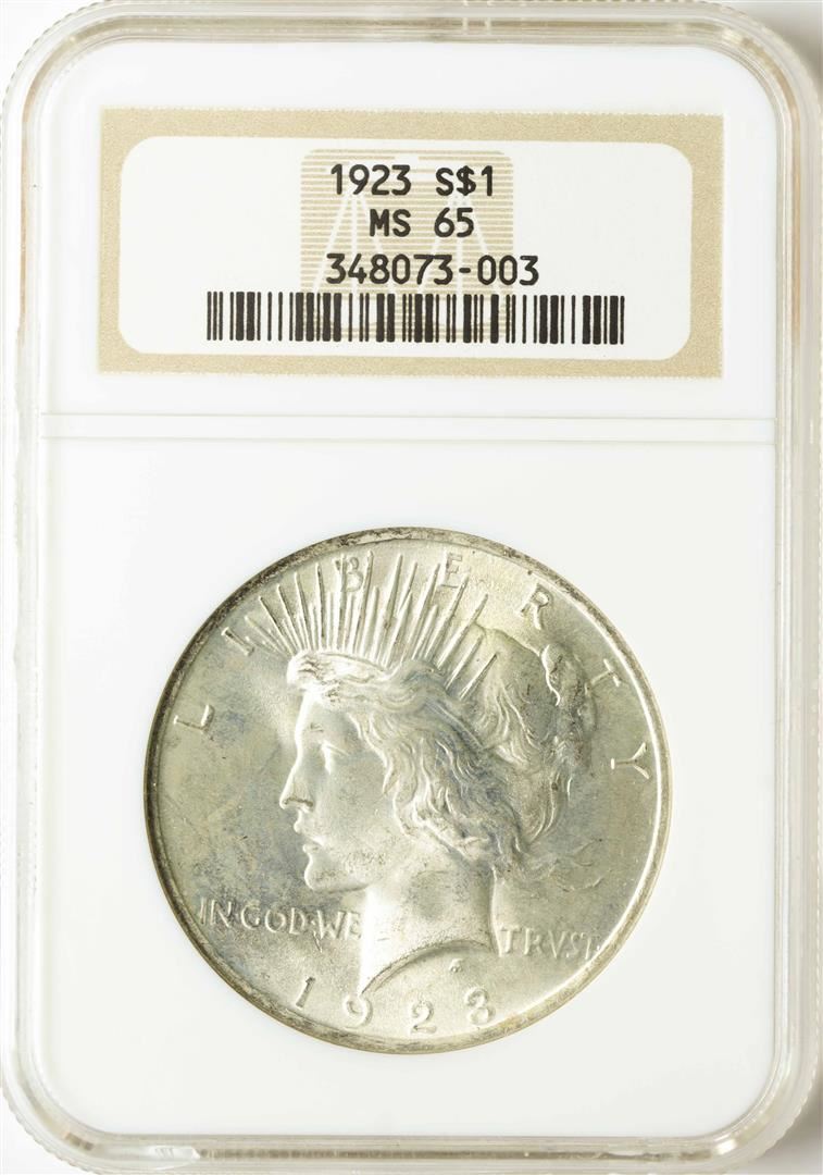 One 1923 $1 Peace Silver Dollar Coin NGC MS65. NGC Certified.