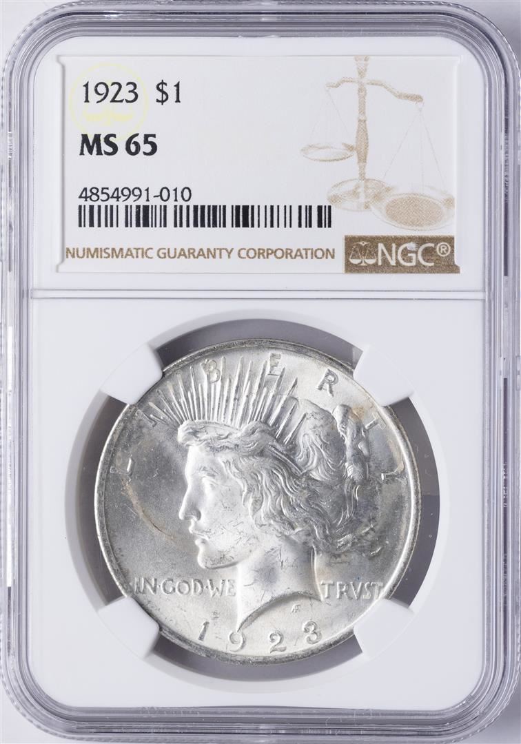 One 1923 $1 Peace Silver Dollar Coin NGC MS65. NGC Certified.
