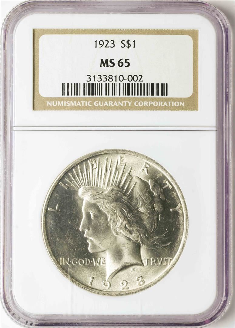 One 1923 $1 Peace Silver Dollar Coin NGC MS65. NGC Certified.