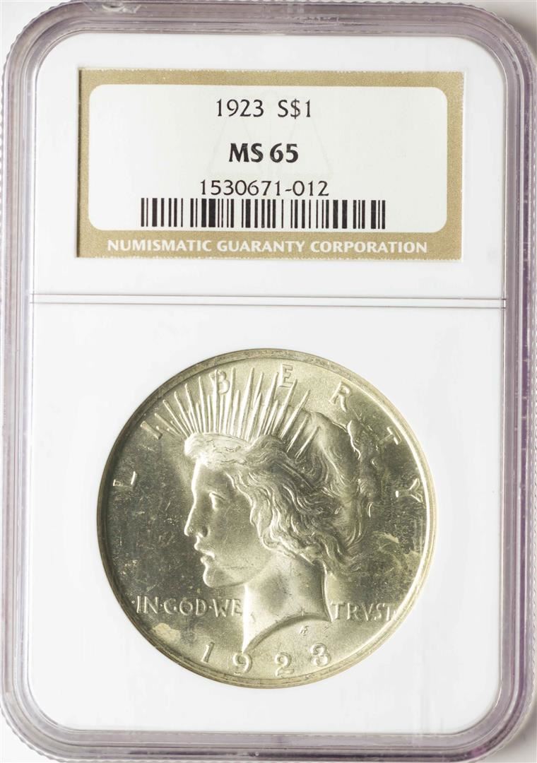 One 1923 $1 Peace Silver Dollar Coin NGC MS65. NGC Certified.