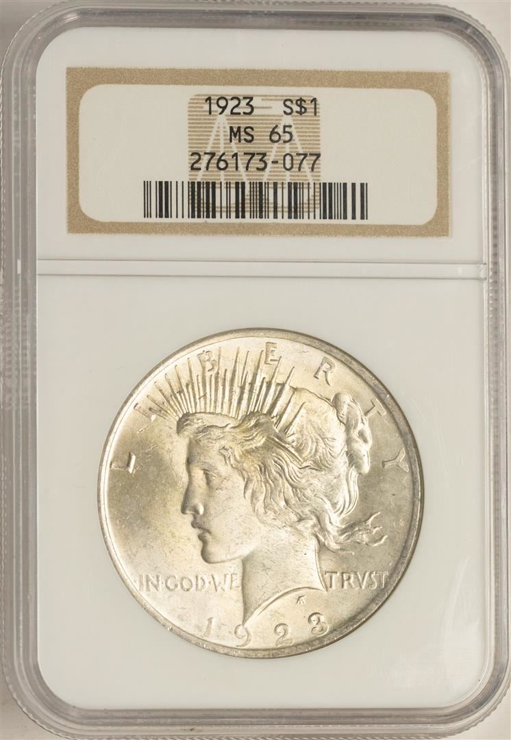 One 1923 $1 Peace Silver Dollar Coin NGC MS65. NGC Certified.