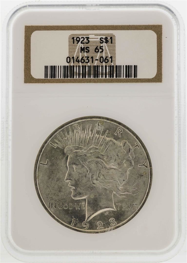 One 1923 $1 Peace Silver Dollar Coin NGC MS65. NGC Certified.