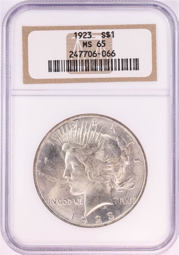 One 1923 $1 Peace Silver Dollar Coin NGC MS65. NGC Certified.