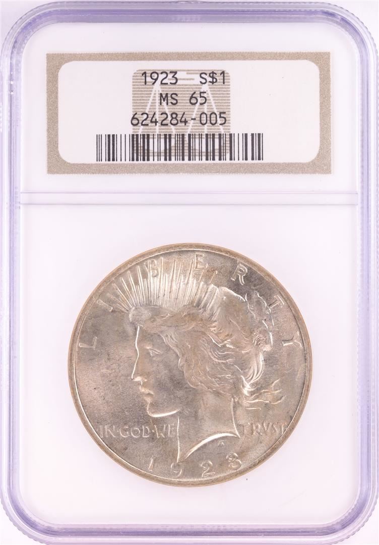 One 1923 $1 Peace Silver Dollar Coin NGC MS65. NGC Certified.