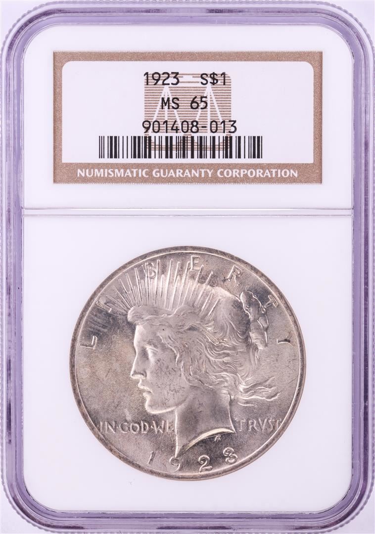 One 1923 $1 Peace Silver Dollar Coin NGC MS65. NGC Certified.