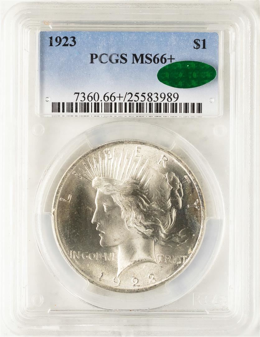 One 1923 $1 Peace Silver Dollar Coin NGC MS66+ CAC. NGC Certified.