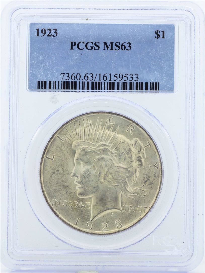 One 1923 $1 Peace Silver Dollar Coin PCGS MS63. PCGS Graded.