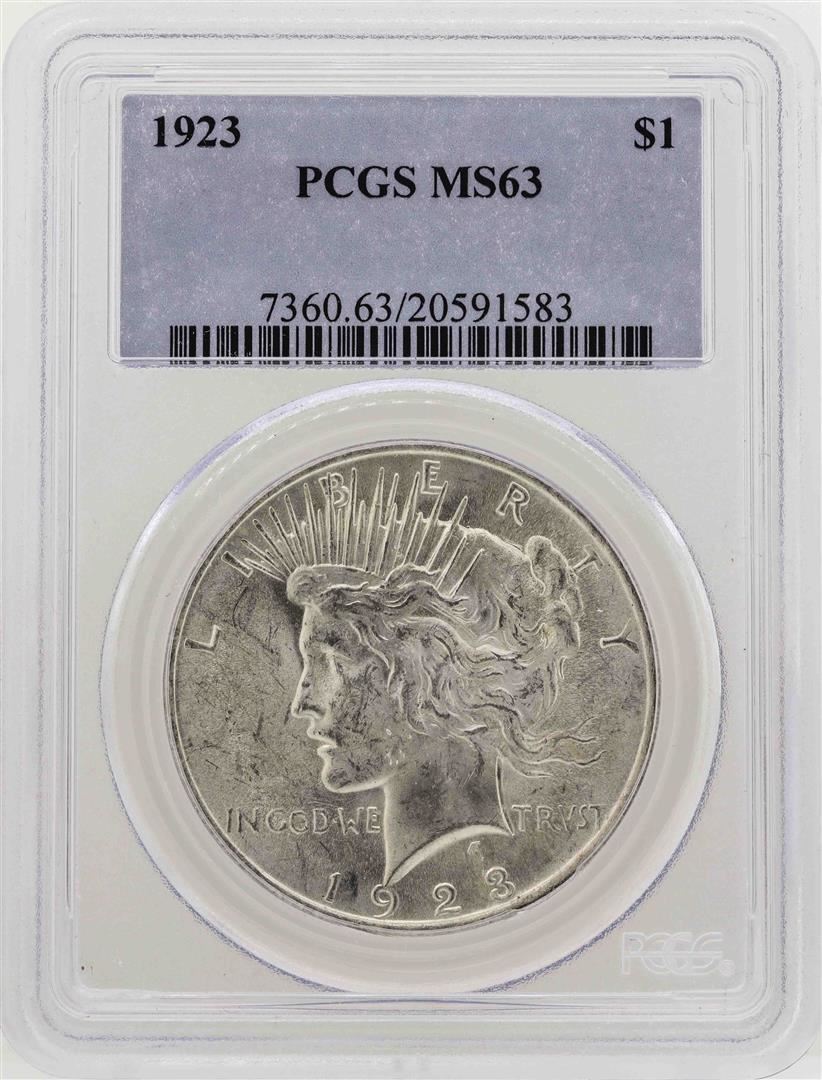 One 1923 $1 Peace Silver Dollar Coin PCGS MS63. PCGS Graded.