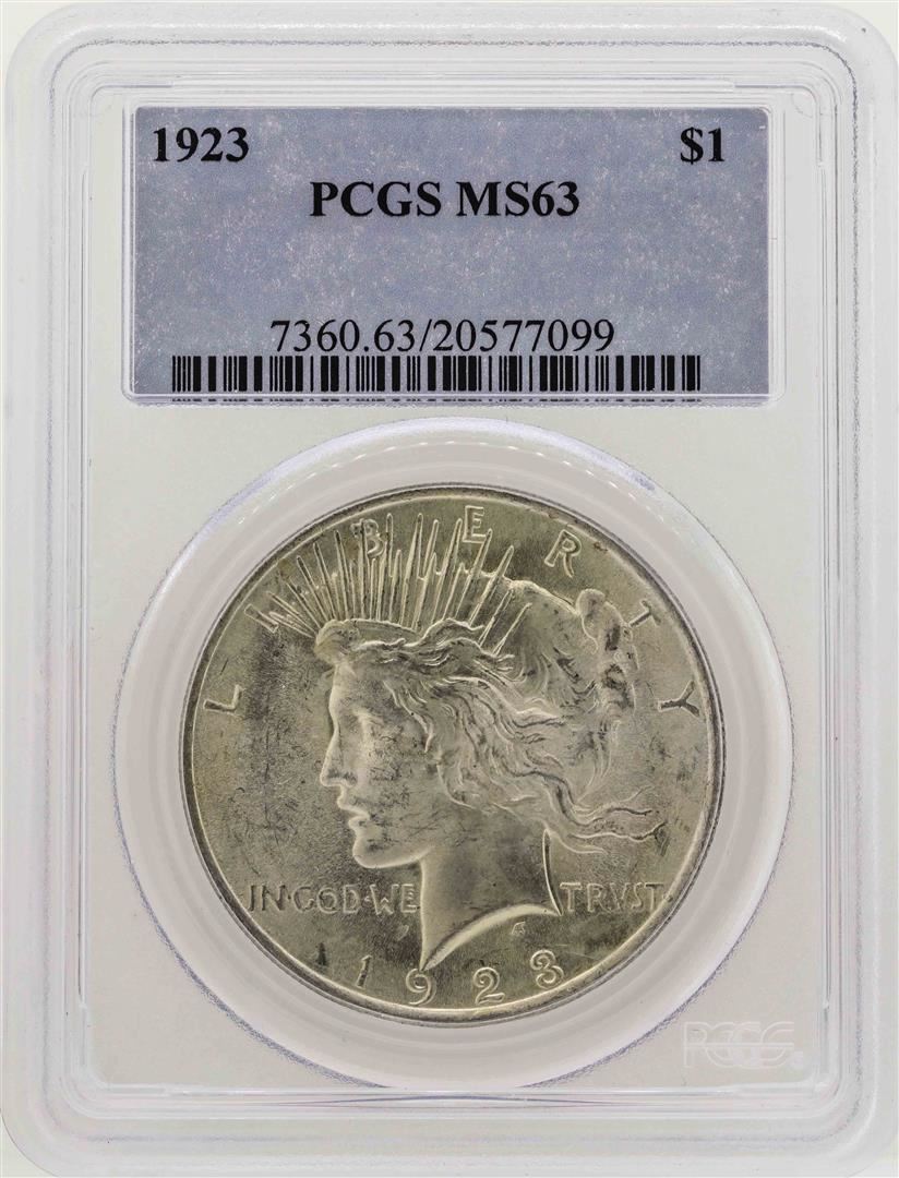 One 1923 $1 Peace Silver Dollar Coin PCGS MS63. PCGS Graded.