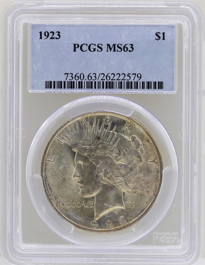 One 1923 $1 Peace Silver Dollar Coin PCGS MS63. PCGS Graded.