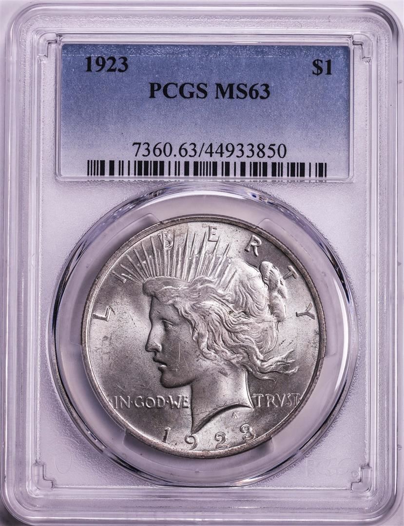 One 1923 $1 Peace Silver Dollar Coin PCGS MS63. PCGS Graded.