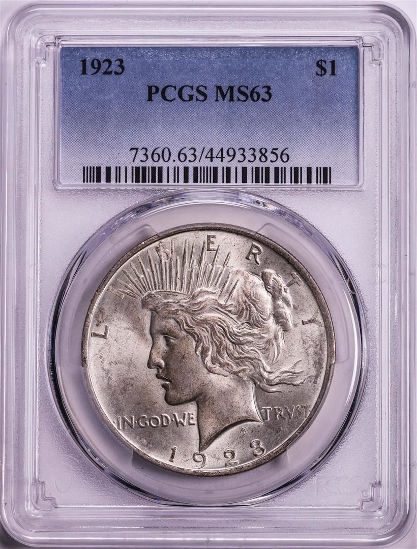 One 1923 $1 Peace Silver Dollar Coin PCGS MS63. PCGS Graded.
