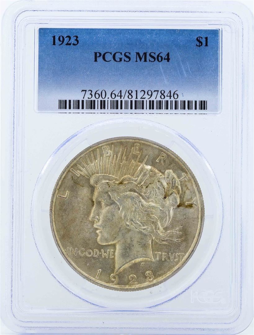 One 1923 $1 Peace Silver Dollar Coin PCGS MS64. PCGS Graded.