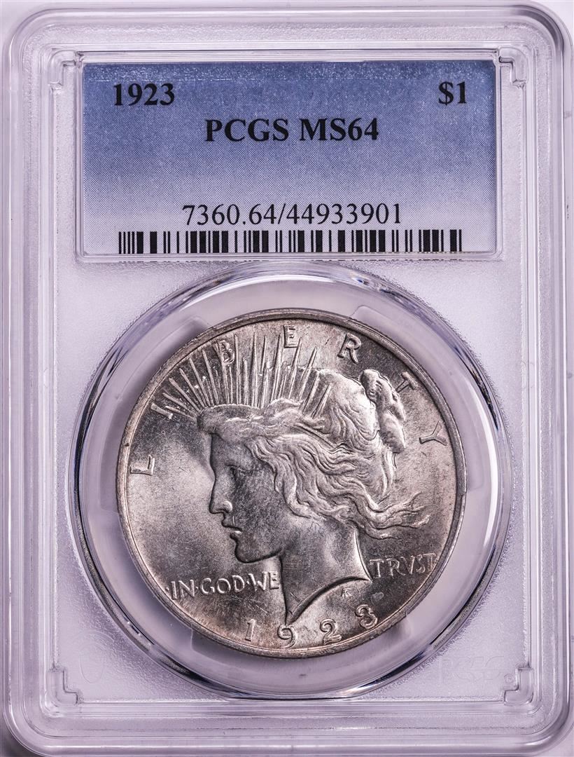 One 1923 $1 Peace Silver Dollar Coin PCGS MS64. PCGS Graded.