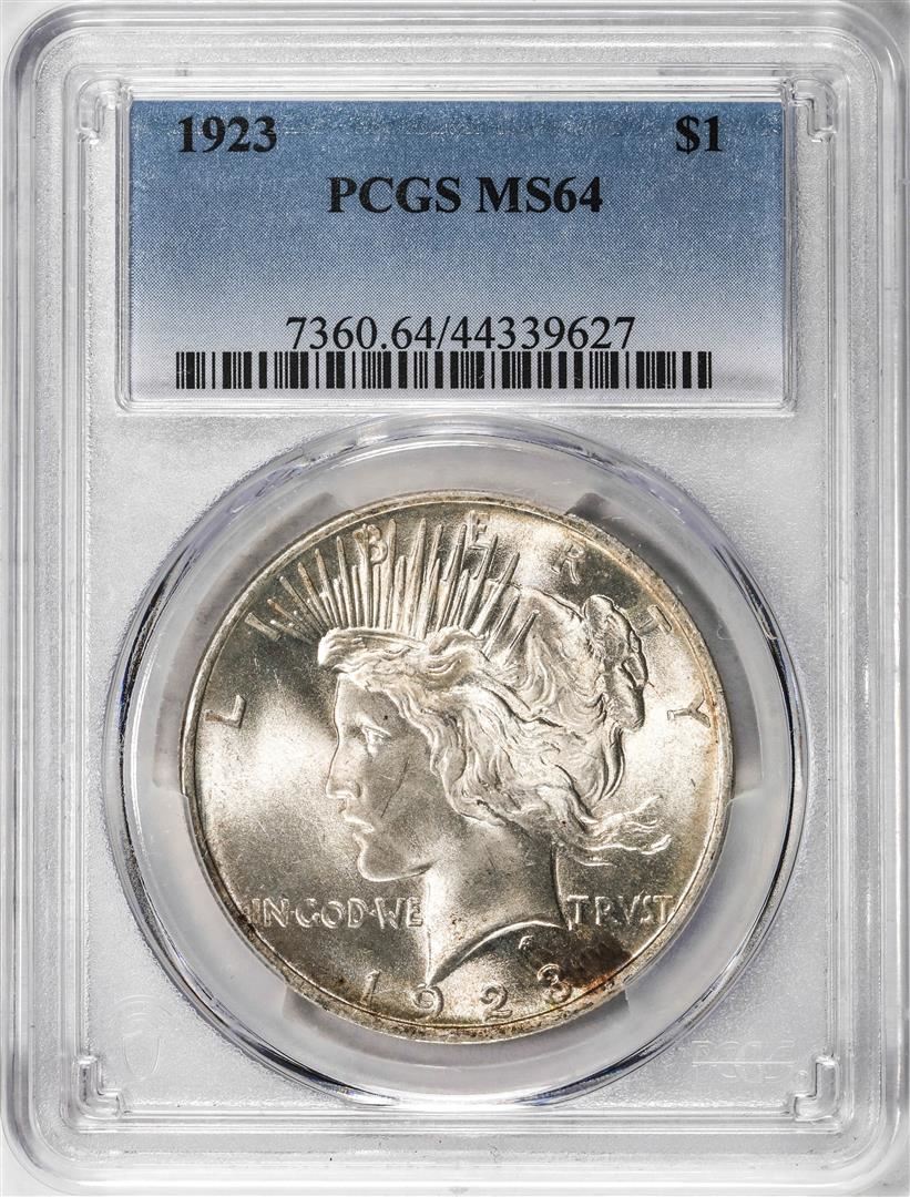 One 1923 $1 Peace Silver Dollar Coin PCGS MS64. PCGS Graded.