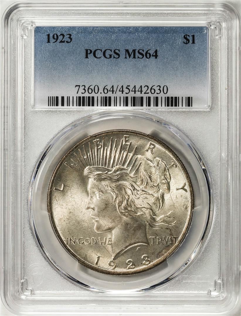 One 1923 $1 Peace Silver Dollar Coin PCGS MS64. PCGS Graded.