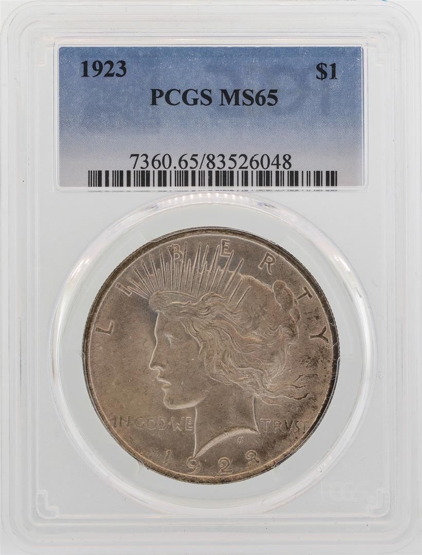 One 1923 $1 Peace Silver Dollar Coin PCGS MS65. PCGS Graded.