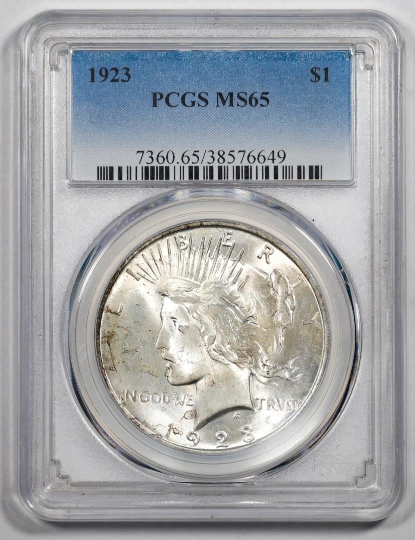 One 1923 $1 Peace Silver Dollar Coin PCGS MS65.