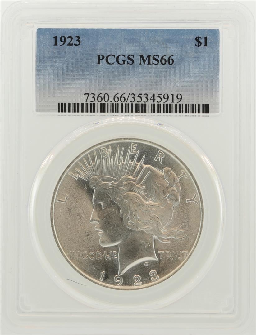 One 1923 $1 Peace Silver Dollar Coin PCGS MS66. PCGS Graded.